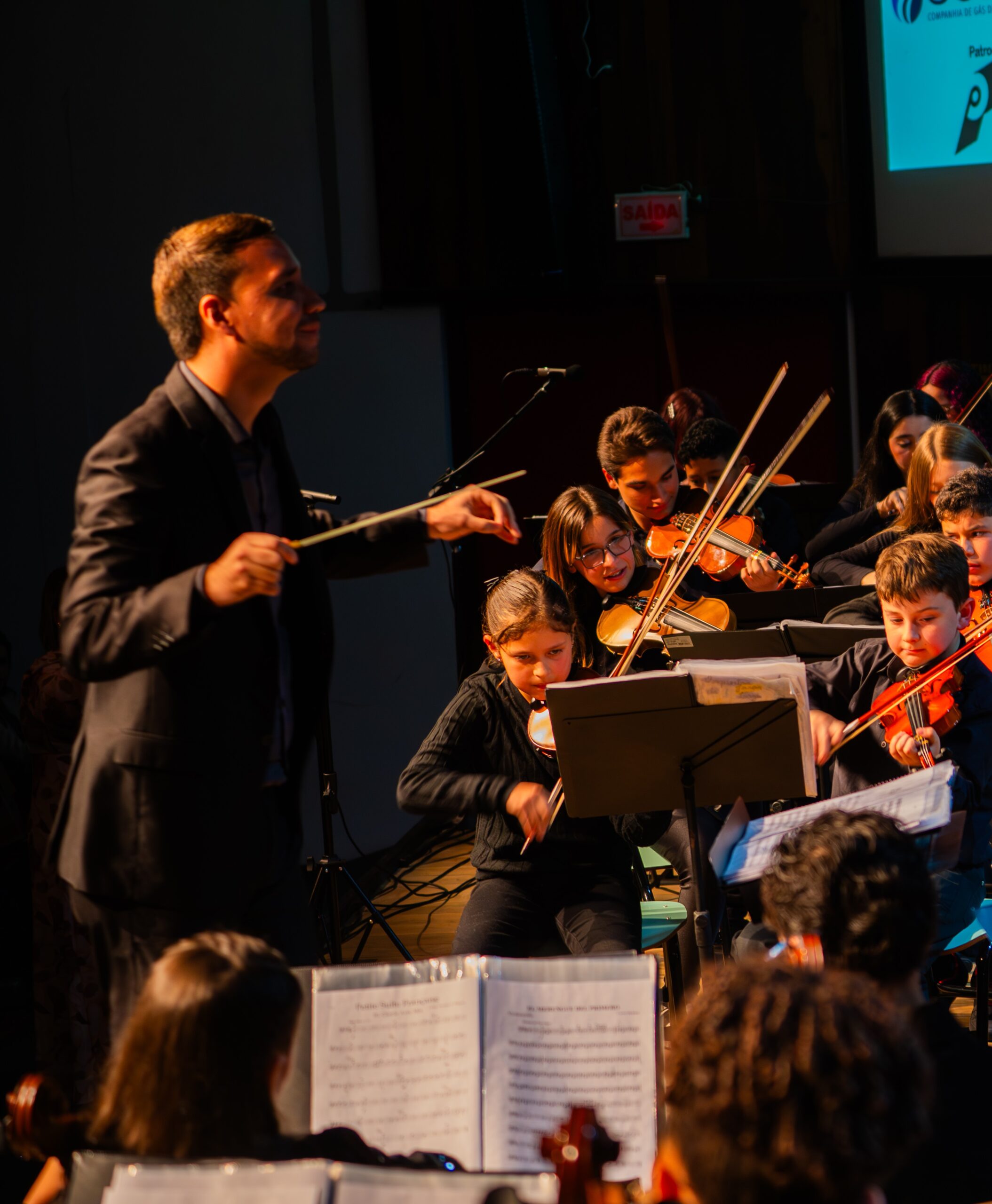 A Orquestra Jovem de Lages é um projeto sociocultural focado na democratização do ensino musical. Oferecemos formação gratuita para crianças e adolescentes, promovendo a inclusão social e o desenvolvimento cultural em nossa região através da prática coletiva de instrumentos de cordas.